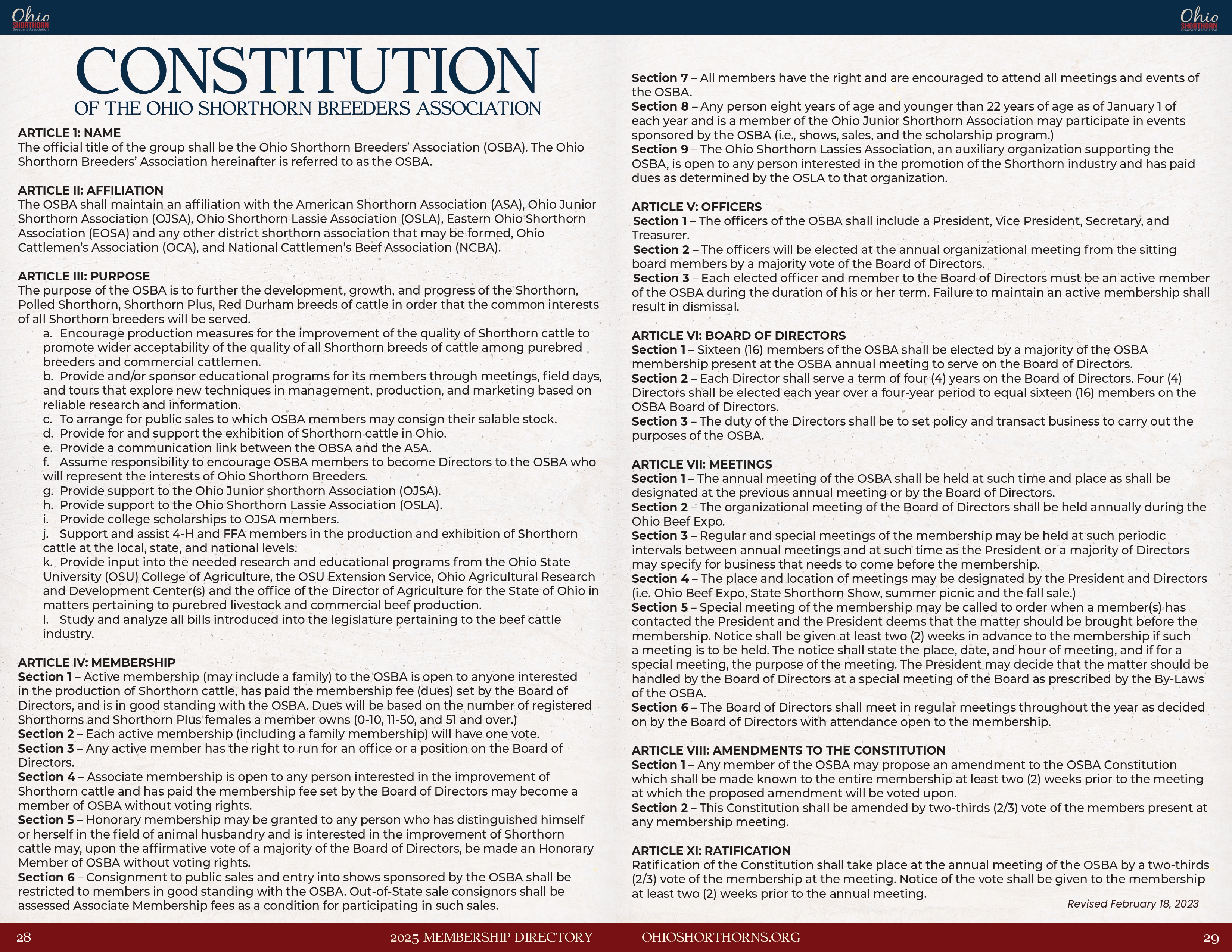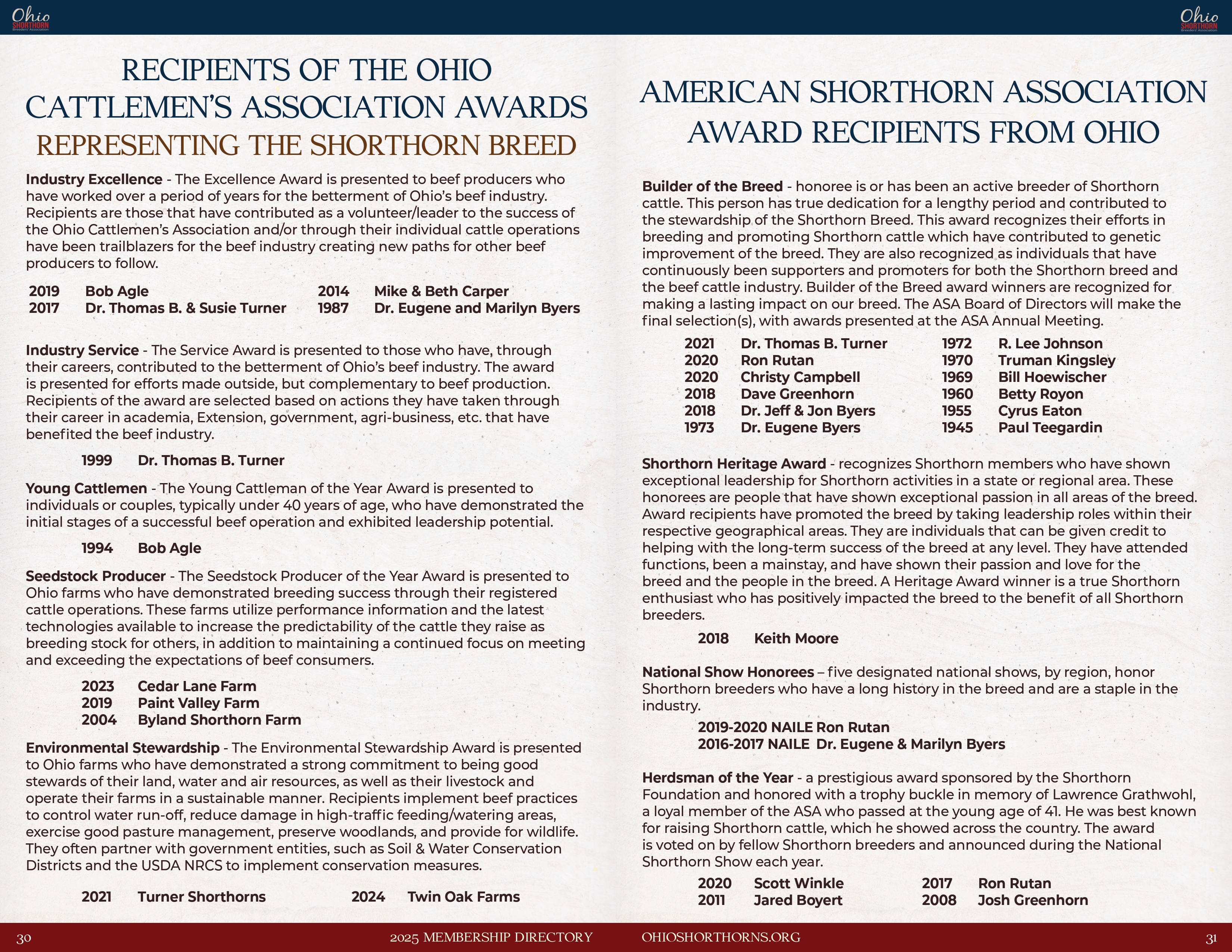 • Voting privileges at Ohio Shorthorn Breeders’ Annual Meeting